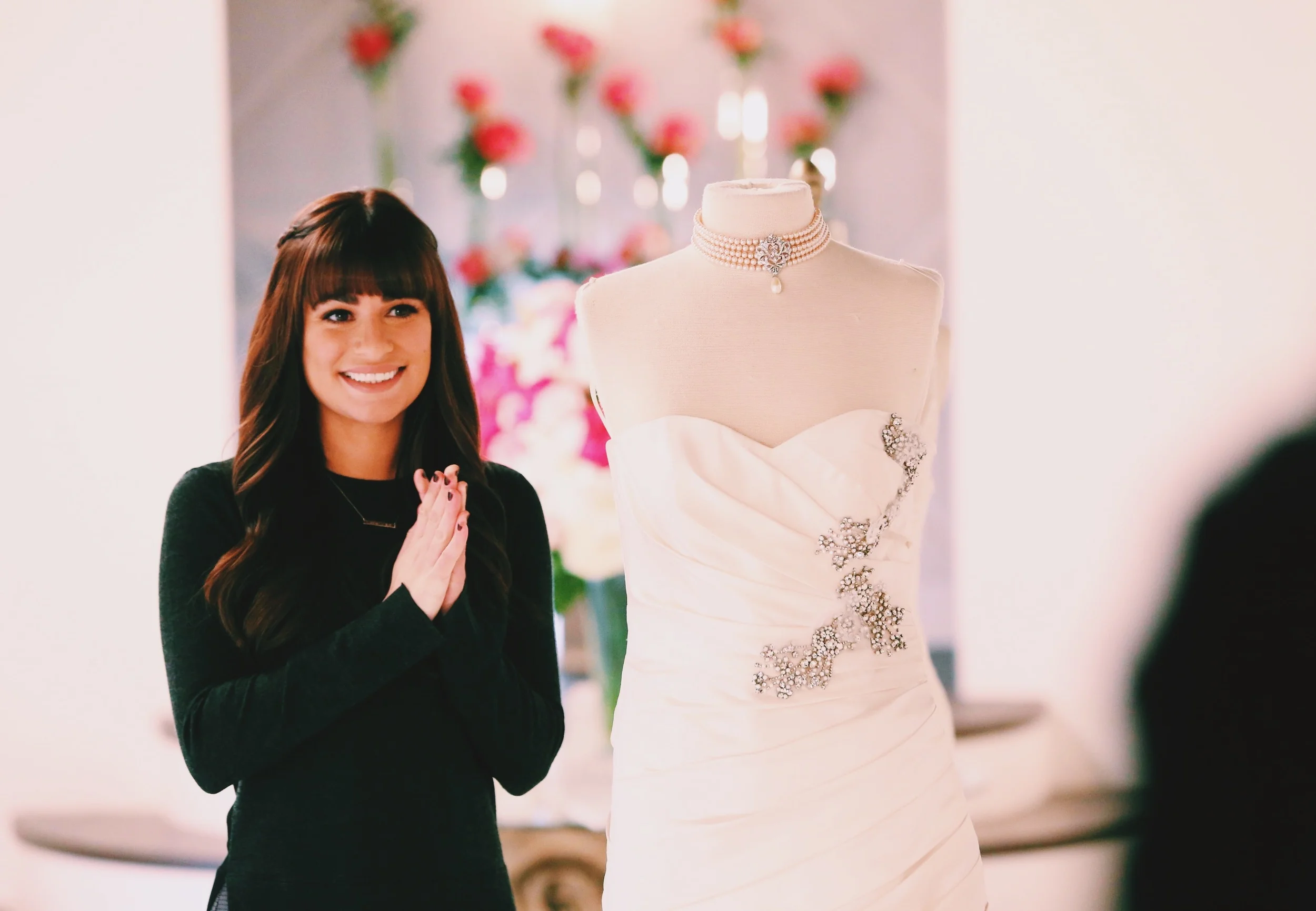 Looking back on all of the television and film work we've done over the years, one of our most cherished experiences was creating this Audrey Hepburn inspired gown for Lea Michele on Glee. This 50's inspired, tea-length gown and veil were custom made for Ms. Michele at L'ezu studio in collaboration with the Glee costume department. Isn't she lovely?